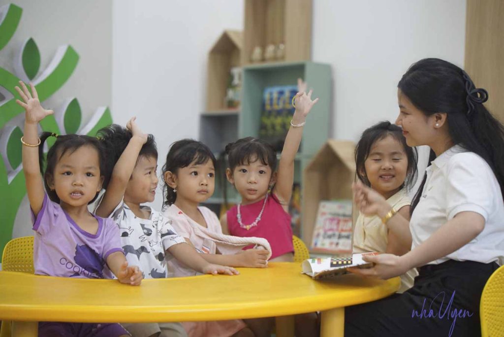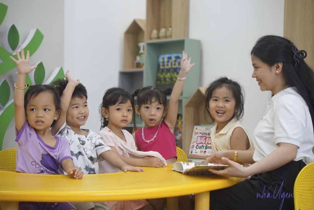 Thói quen giao tiếp hằng ngày đóng vai trò quan trọng để trẻ làm quen với tiếng Anh. Cha mẹ có thể xen kẽ những câu đơn giản như “let’s eat” hay “sit down please” vào các hoạt động thường nhật. Điều quan trọng là khuyến khích trẻ trả lời, dù chỉ bằng một từ ngắn, vì đó là bước khởi đầu của phản xạ ngôn ngữ. Duy trì đều đặn, bé sẽ dần hình thành thói quen phản xạ bằng tiếng Anh mà không cần gượng ép.