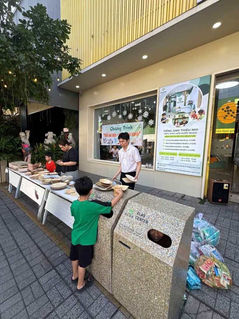 Tiếp nối chuỗi hoạt động giới thiệu và lan tỏa lối sống xanh tại chợ, chương trình “Đổi vỏ sữa lấy sản phẩm xanh” đã được tổ chức ngay sau đó tại Trung tâm tiếng Anh ELAS – trung tâm tiếng Anh dạy theo phương pháp phản xạ cho trẻ ở An Giang. Hoạt động không chỉ mang ý nghĩa bảo vệ môi trường mà còn góp phần giáo dục ý thức sống xanh, sống có trách nhiệm cho các em nhỏ ngay từ những năm đầu đời.