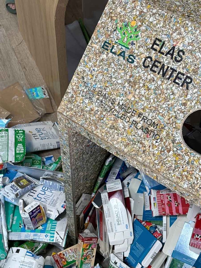 Sau khi kết thúc buổi đổi sản phẩm, đội ngũ giáo viên và nhân viên tại trung tâm ELAS đã cùng nhau ngồi lại để phân loại số lượng lớn vỏ sữa thu được. Các vỏ hộp được tách riêng thành nhóm đã được làm sạch và nhóm chưa rửa, nhằm tiếp tục xử lý, vệ sinh và tái chế đúng quy trình. Công đoạn này thể hiện rõ tinh thần trách nhiệm và sự nghiêm túc của ELAS trong việc thực hiện các hoạt động bảo vệ môi trường một cách thực chất, không chỉ dừng lại ở hình thức.